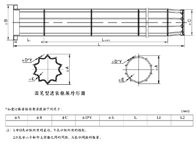 • 除塵骨架圓形的標準外形圖橫截面